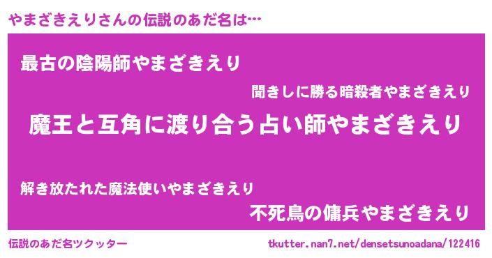 | 意味不明あだ名 | 『自称やまざきえり』 |