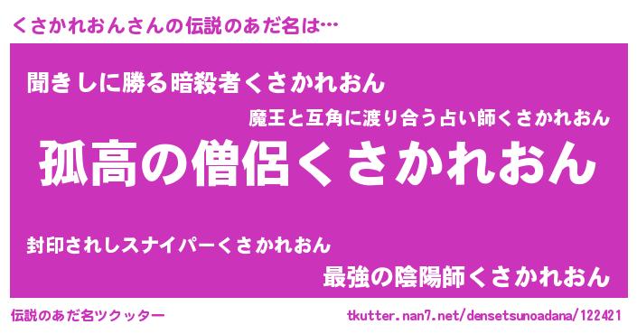 | 女子向けラノベタイトル風あだ名 | 『くさかれおんは平凡を望む』 |