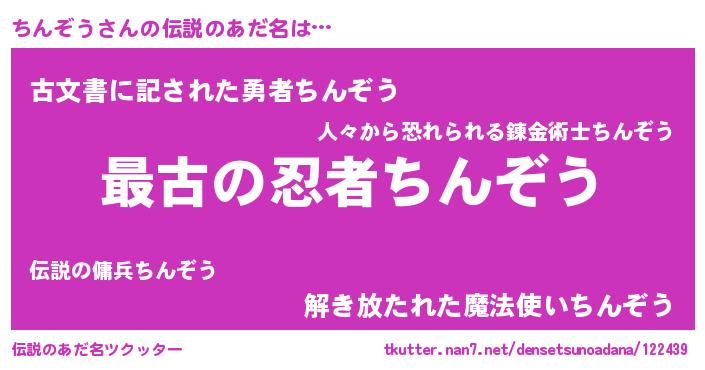 | 男性向けラノベタイトル風あだ名 | 『この素晴らしい世界にちんぞうを!』 |