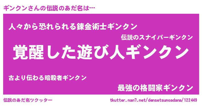 | 男性向けラノベタイトル風あだ名 | 『この素晴らしい世界にギンクンを!』 |