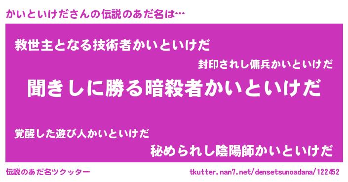 | 料理風あだ名 | 『かいといけだのカルパッチョ風』 |