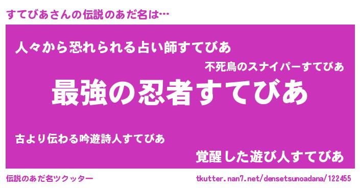 | 意味不明あだ名 | 『住所不定無職すてびあ(68歳)』 |