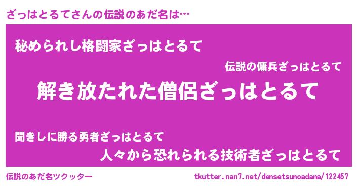 | 意味不明あだ名 | 『自称ざっはとるて』 |