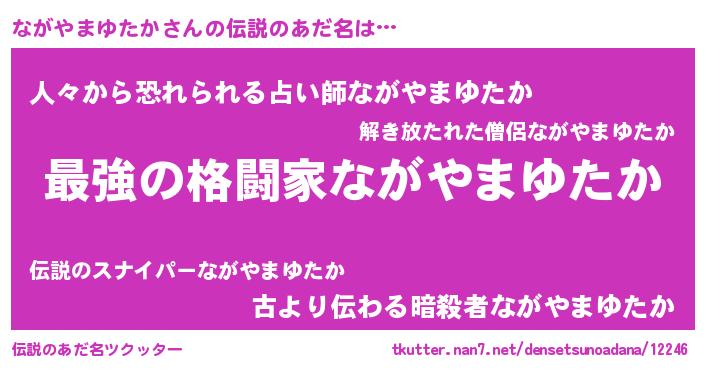 | 意味不明あだ名 | 『ながやまゆたかフォーエバー』 |