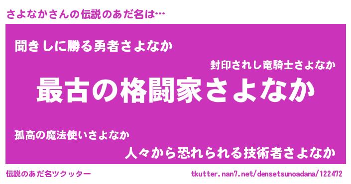 | ヘコむあだ名 | 『豆乳』『さよなか(苦笑)』『さよを』 |