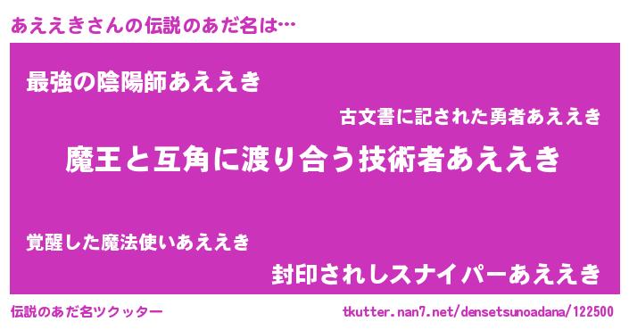 | ヒーロー風カッコイイあだ名 | 『愛の使者あええき』『仮面アエダー』 |