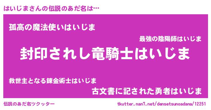 | 意味不明あだ名 | 『ペロリンはいじま』『永久保存はいじま』 |