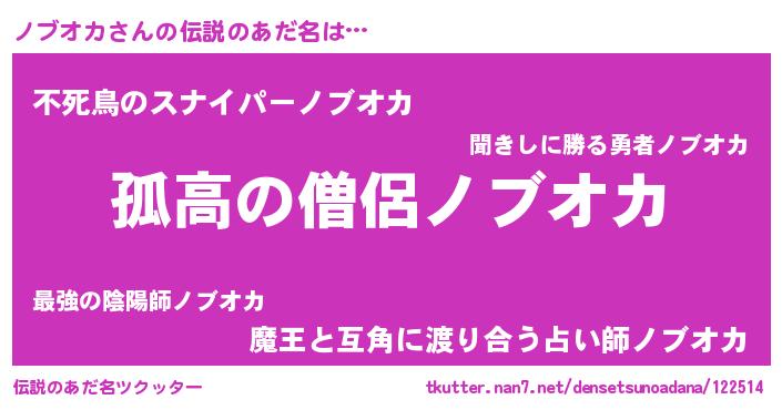 | ヒーロー風カッコイイあだ名 | 『黄金騎士ノブ』『スーパーノブオカ』 |