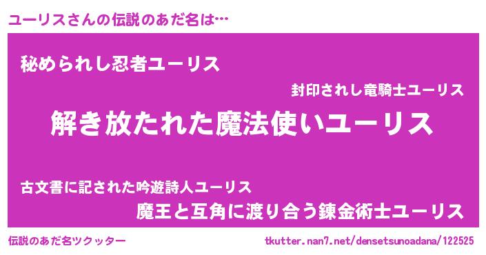 | 意味不明あだ名 | 『住所不定無職ユーリス(4歳)』 |