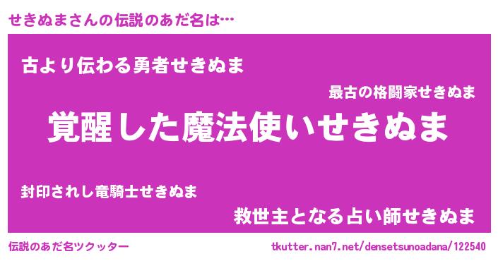 | 胡散臭い通販商品みたいなあだ名 | 『全米が絶賛したサプリメント…その名も「せきぬま」』 |