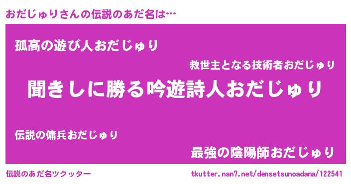 | 男性向けラノベタイトル風あだ名 | 『魔法科高校のおだじゅり』 |