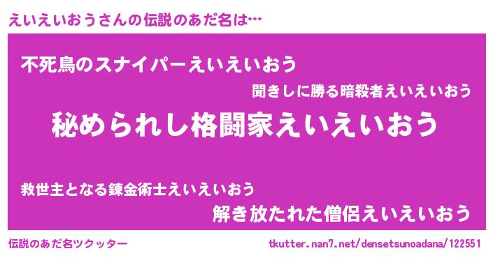 | 意味不明あだ名 | 『えいえいおうフォーエバー』 |