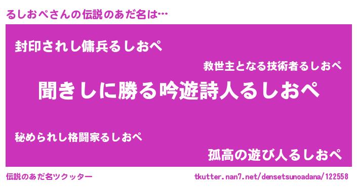| ヘコむあだ名 | 『るしおぺ(笑)』『るしにゅー』 |