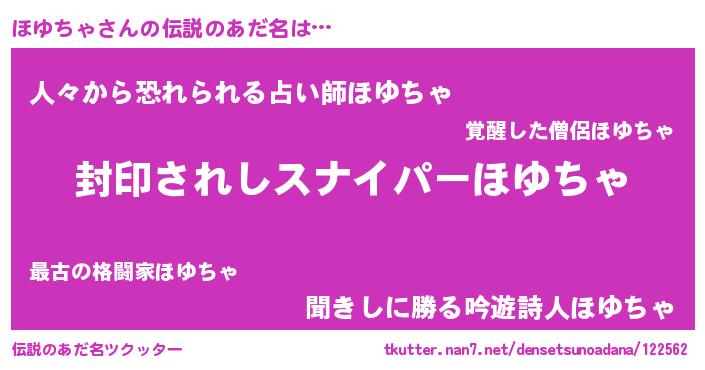 | 意味不明あだ名 | 『ペロリンほゆちゃ』『永久保存ほゆちゃ』 |