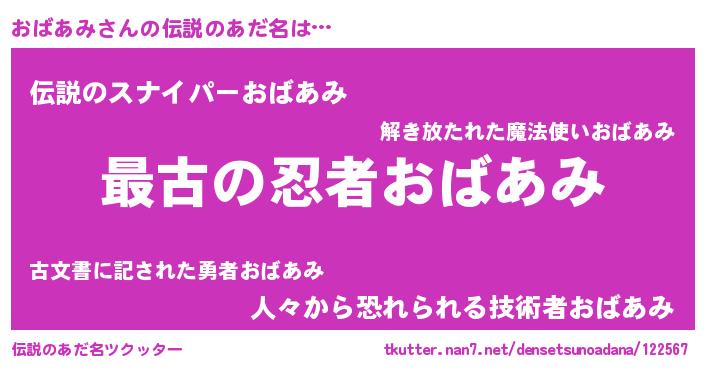 | 意味不明あだ名 | 『おばあみフォーエバー』『自称おばあみ』 |