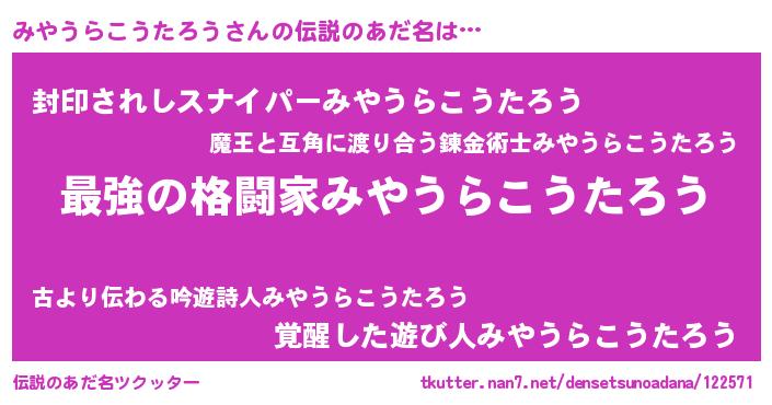 | ファンタジー風あだ名 | 『エターナルミヤウラコウタロウー』 |