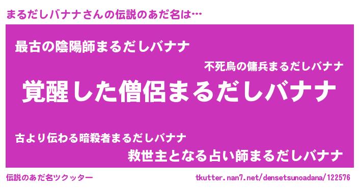 | 男性向けラノベタイトル風あだ名 | 『この素晴らしい世界にまるだしバナナを!』 |