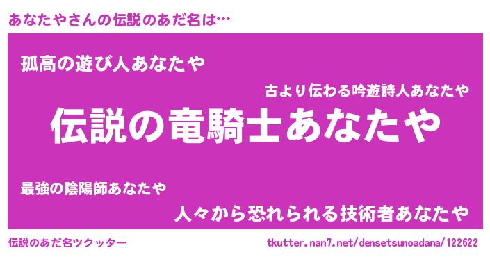 | 女子向けラノベタイトル風あだ名 | 『あなたやなんてお断りですっ。』 |