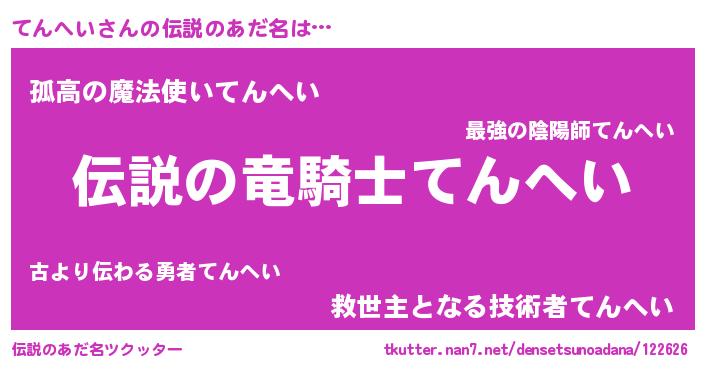 | ヒーロー風カッコイイあだ名 | 『超時空戦士テンヘイ』『幻影騎士テン』 |