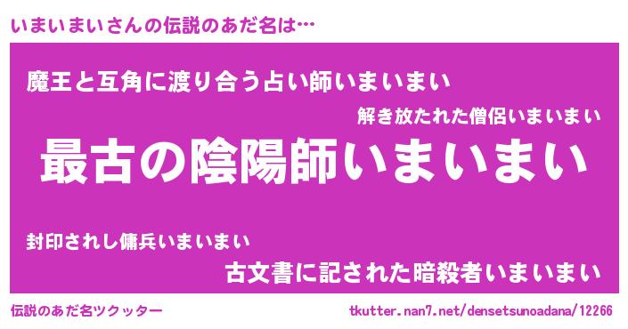 | 意味不明あだ名 | 『自称いまいまい』『永久保存いまいまい』 |