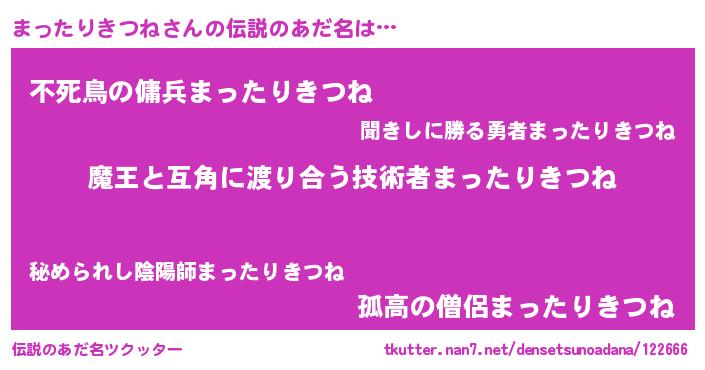 | 男性向けラノベタイトル風あだ名 | 『転生したらまったりきつねだった件』 |