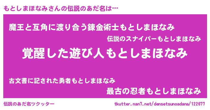 | 女子向けラノベタイトル風あだ名 | 『もとしまほなみ様がみてる』 |