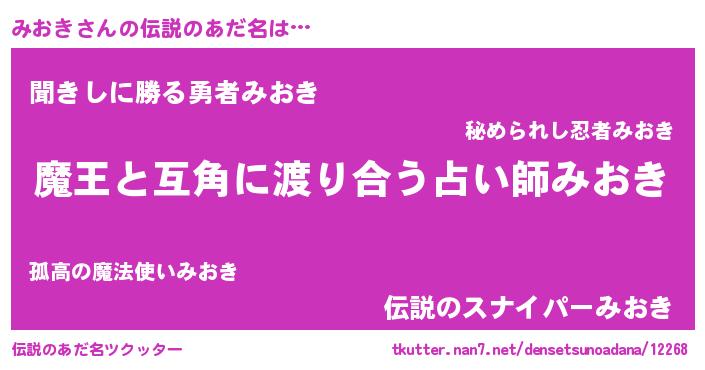 | ポケモン風あだ名 | 『ミオキング』『ミックウザ』 |