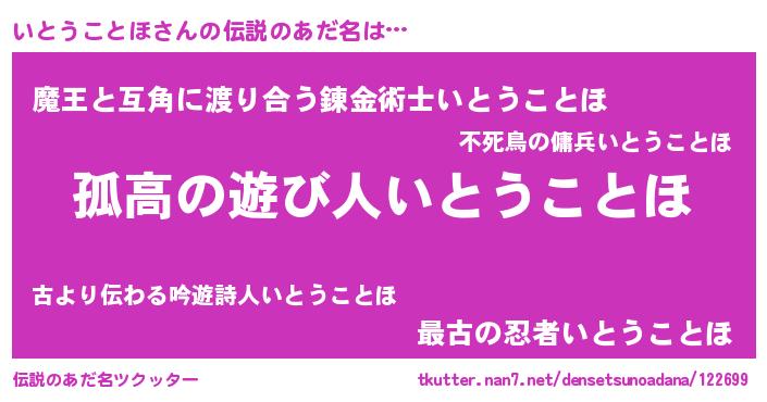 | 男性向けラノベタイトル風あだ名 | 『ダンジョンにいとうことほを求めるのは間違っているだろうか』 |