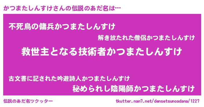 | 男性向けラノベタイトル風あだ名 | 『ノーゲーム・ノーカツマタシンスケ』 |