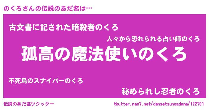 | 胡散臭い通販商品みたいなあだ名 | 『信頼と実績のサプリメント…その名も「のくろ」』 |