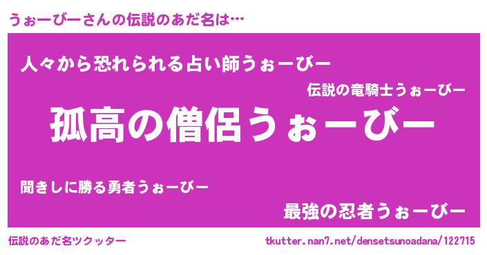| 女子向けラノベタイトル風あだ名 | 『うぉーびーなんてお断りですっ。』 |