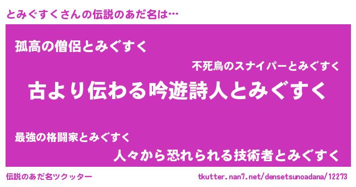 | ヒーロー風カッコイイあだ名 | 『仮面トミダー』『ネオトミグスク』 |
