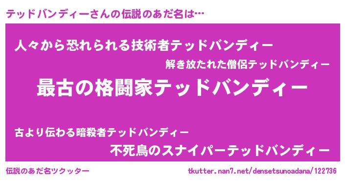 | 胡散臭い通販商品みたいなあだ名 | 『テレビで話題の高麗人参…その名も「テッドバンディー」』 |