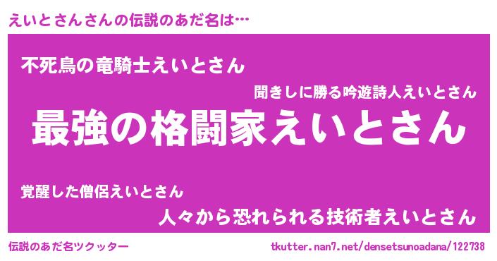 | 意味不明あだ名 | 『住所不定無職えいとさん(3歳)』 |