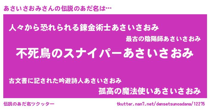| ヒーロー風カッコイイあだ名 | 『スーパーアサイサオミ』『幻影騎士アサ』 |