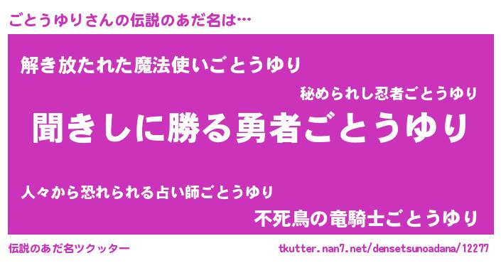 | 女子向けラノベタイトル風あだ名 | 『異世界で失敗しない100のごとうゆり』 |
