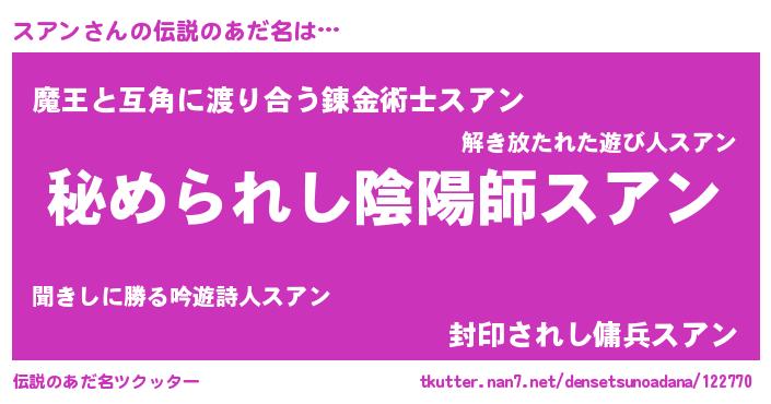 | ポケモン風あだ名 | 『スアンダネ』『スックウザ』 |