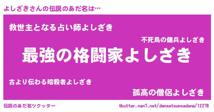 | ファンタジー風あだ名 | 『ゼヨシトゥ』『エターナルヨシザキー』 |