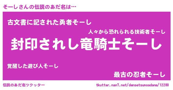 | 胡散臭い通販商品みたいなあだ名 | 『あなたにだけ特別に提供する100年もののヴィンテージワイン…その名も「そーし」』 |