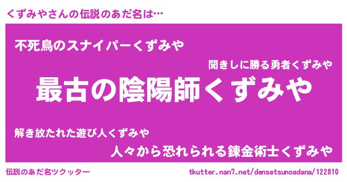 | 意味不明あだ名 | 『くずみやフォーエバー』『自称くずみや』 |