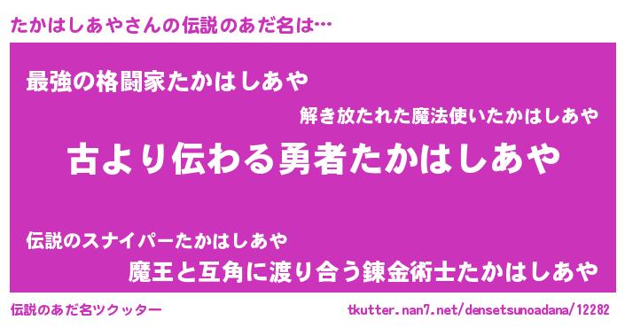 | ヒーロー風カッコイイあだ名 | 『ネオタカハシアヤ』『幻影騎士タカ』 |