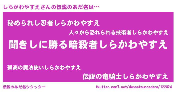 | 意味不明あだ名 | 『自称しらかわやすえ』 |