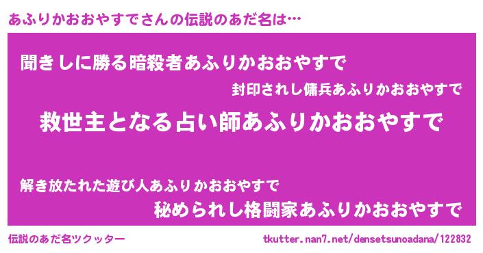 | ヒーロー風カッコイイあだ名 | 『天空の使者あふりかおおやすで』 |
