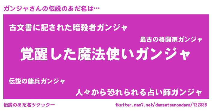 | 女子向けラノベタイトル風あだ名 | 『ガンジャ様がみてる』 |
