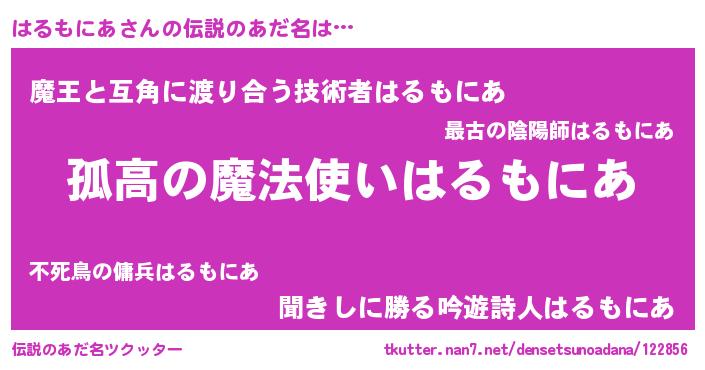 | 男性向けラノベタイトル風あだ名 | 『ダンジョンにはるもにあを求めるのは間違っているだろうか』 |
