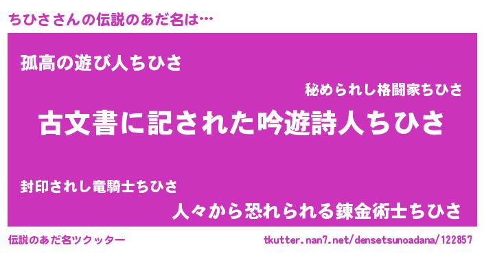 | ヒーロー風カッコイイあだ名 | 『究極戦士チヒサ』『ネオチヒサ』 |