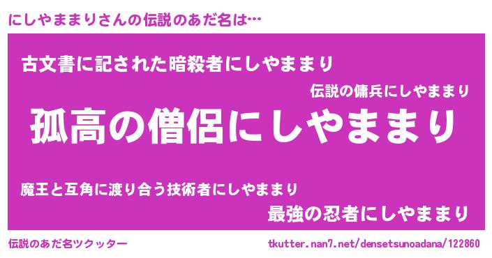 | ポケモン風あだ名 | 『ヒニシヤママリ』『ニシキング』 |