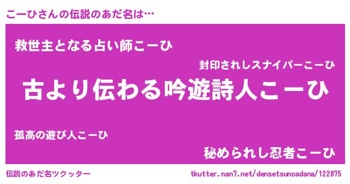 | ヘコむあだ名 | 『こーひ(笑)』『酢こんぶ』 |