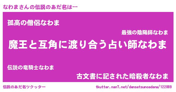 | ヒーロー風カッコイイあだ名 | 『サイバー戦士ナワマ』『仮面ナワダー』 |