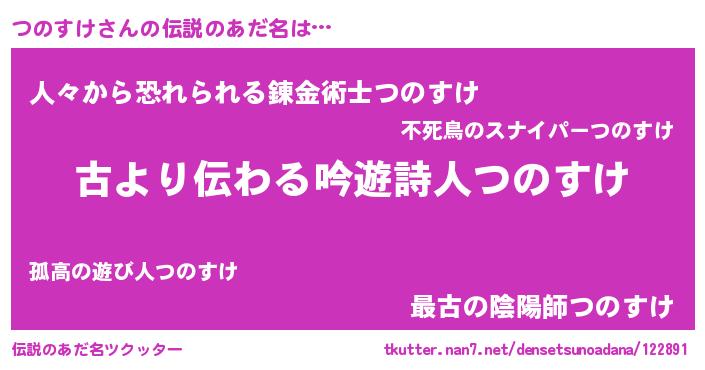 | 男性向けラノベタイトル風あだ名 | 『この素晴らしい世界につのすけを!』 |